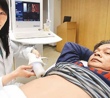 当时接待周先生的是邱根全主任。邱根全主任看到周先生面色暗沉,通过了解得知周先生四肢无力、食欲下降、恶心、呕吐、肝区疼痛,于是初步诊断为肝硬化。为了进一步确诊,邱根全主任建议周先生做系列检查,结果显示周先生ALT为172u/L、AST为98u/L、TBIL为43umol/L、DBIL为33umol/L;在B超检查中发现周先生的肝脏大小形态正常,内部回声粗糙,脾体积增大。