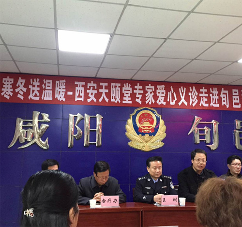2015年11月26日,在这个寒冬的日子里却并不寒冷,天颐堂中医院驱车数百公里,组织名老中医专家团队,携带专业设备,将健康与爱心送去给旬邑县警营的公安干警们。