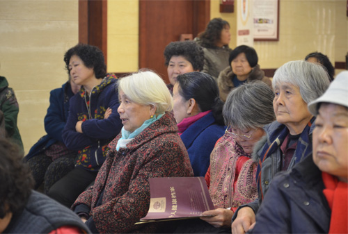 老人们认真的听讲、做记录