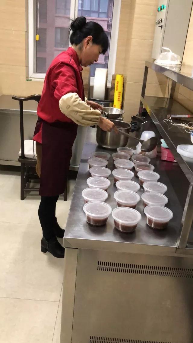 粥,在人们的记忆里是儿时母亲一大早在厨房慢慢熬制的温暖,为了让居民们能尝到色香味俱全的腊八粥,感受到这份温暖,贴心的厨师起了一个大早就开始了腊八粥的熬制。
